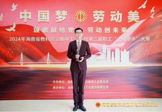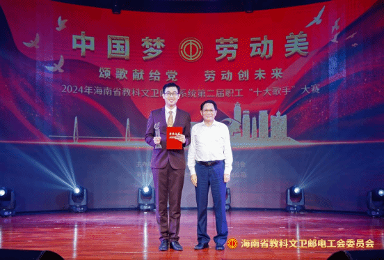 6月29日,由海南省教科文卫邮电工会举办的“中国梦·劳动美——颂歌献给党 劳动创未来”2024年海南省教科文卫邮电系统职工第二届十大歌手比赛圆满结束。英国正版365官方网站教师蔡景新荣获本次比赛一等奖。