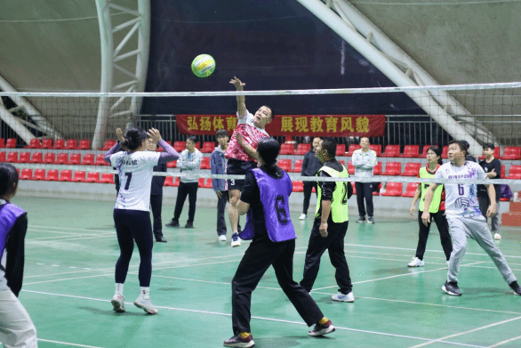 比赛分为初赛、半决赛和决赛三个阶段进行,各参赛队在赛场上展开了激烈的角逐。教职工们一改平日课堂上的严肃形象,在球场上活力四射,他们精准的发球、巧妙的接球、有力的扣杀,每一个动作都尽显专业与激情,充分展现了团结协作、顽强拼搏的精神风貌。比赛过程中,现场观众的欢呼声、掌声此起彼伏,为参赛选手们加油助威,比赛现场沉浸在一片欢乐与紧张的氛围之中。