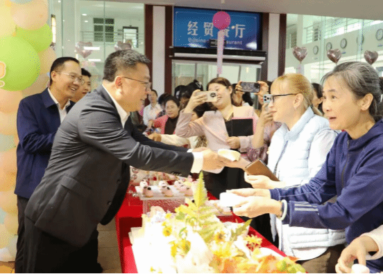 3月9日,一场热闹又温馨的特色美食体验活动在教工食堂温情启幕,校领导与教职工欢聚一堂,共赴这场充满暖意的美食之约。印有节日祝福的主题蛋糕、色泽鲜美的时令水果、造型精致的糕点、温馨的装饰和节日标语让食堂暖意融融,香甜的气息萦绕在食堂的每个角落,处处洋溢着节日的美好氛围。